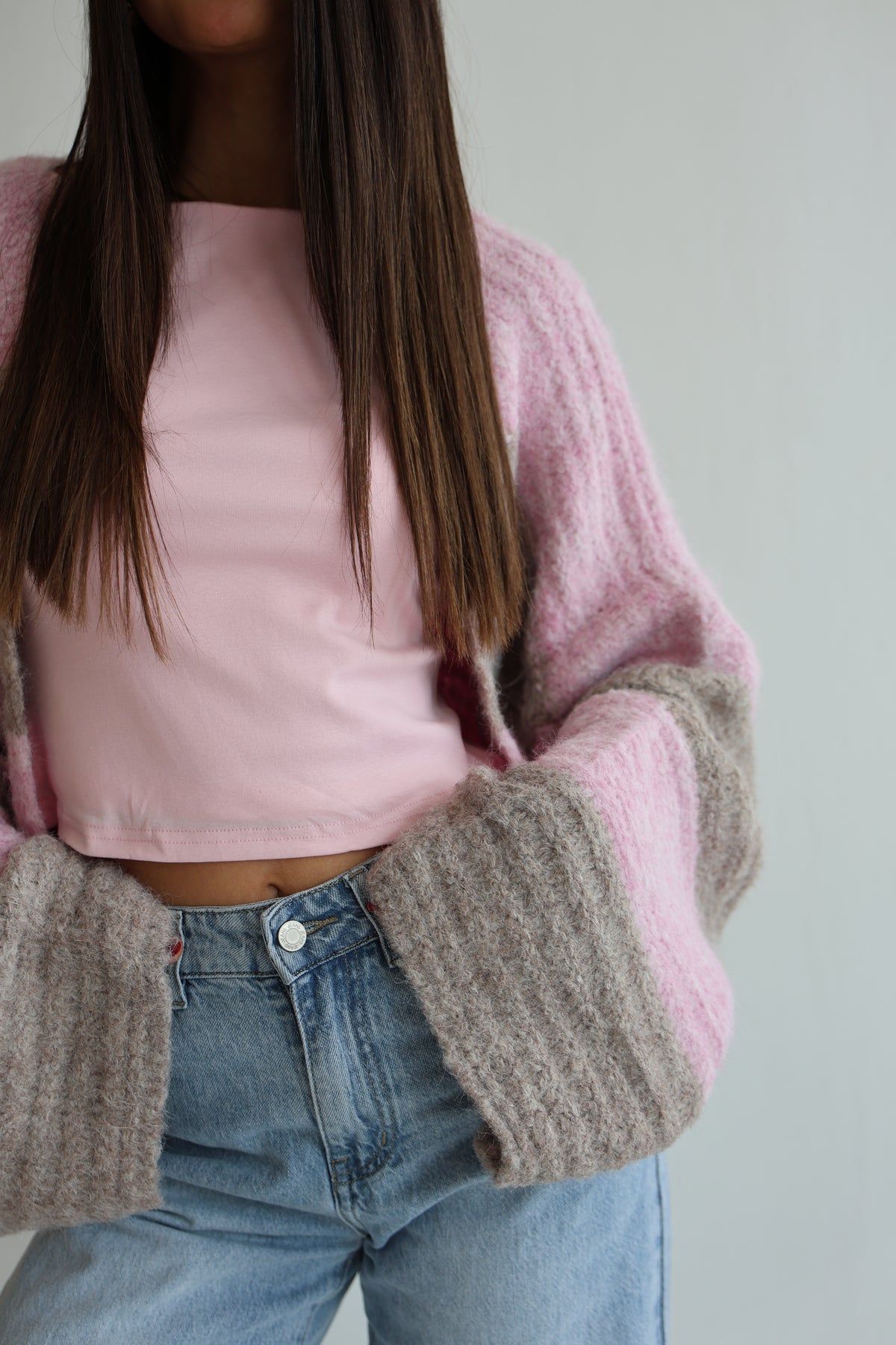 • offener Cardigan mit breiten Streifen