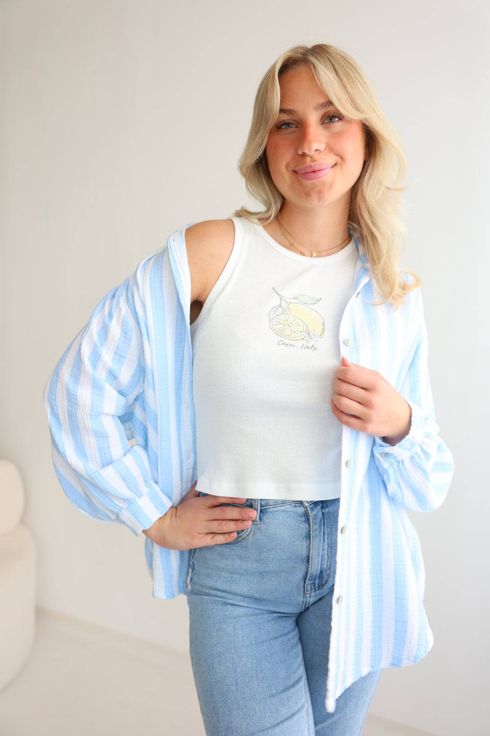 Kurzes Blusenhemd aus Musselin Blockstripes