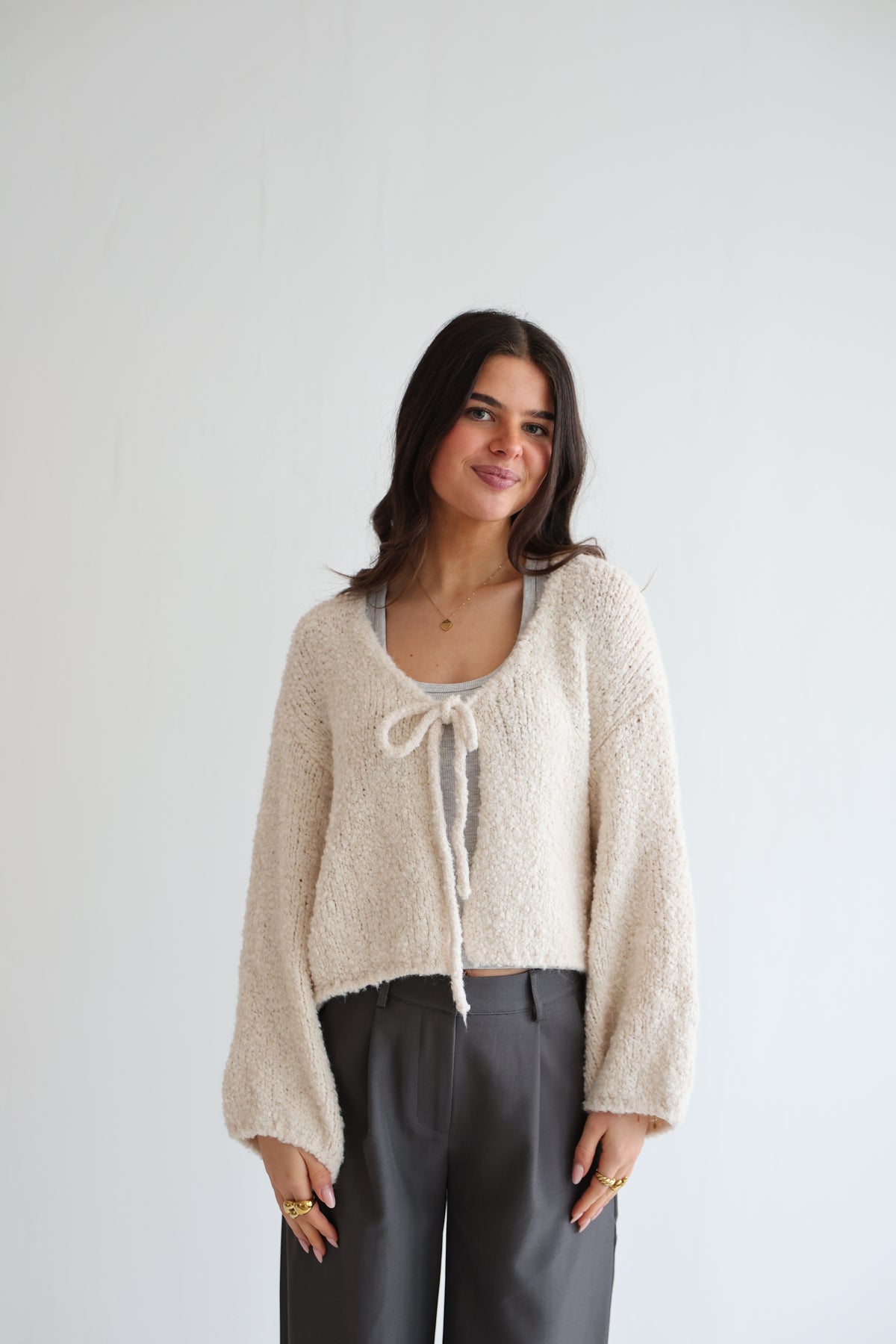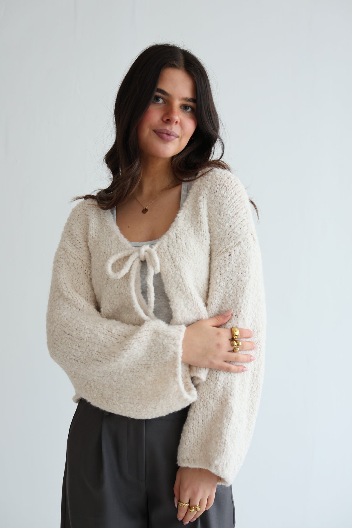 • der Cardigan kann dank der Schleifen offen oder geschlossen getragen werden