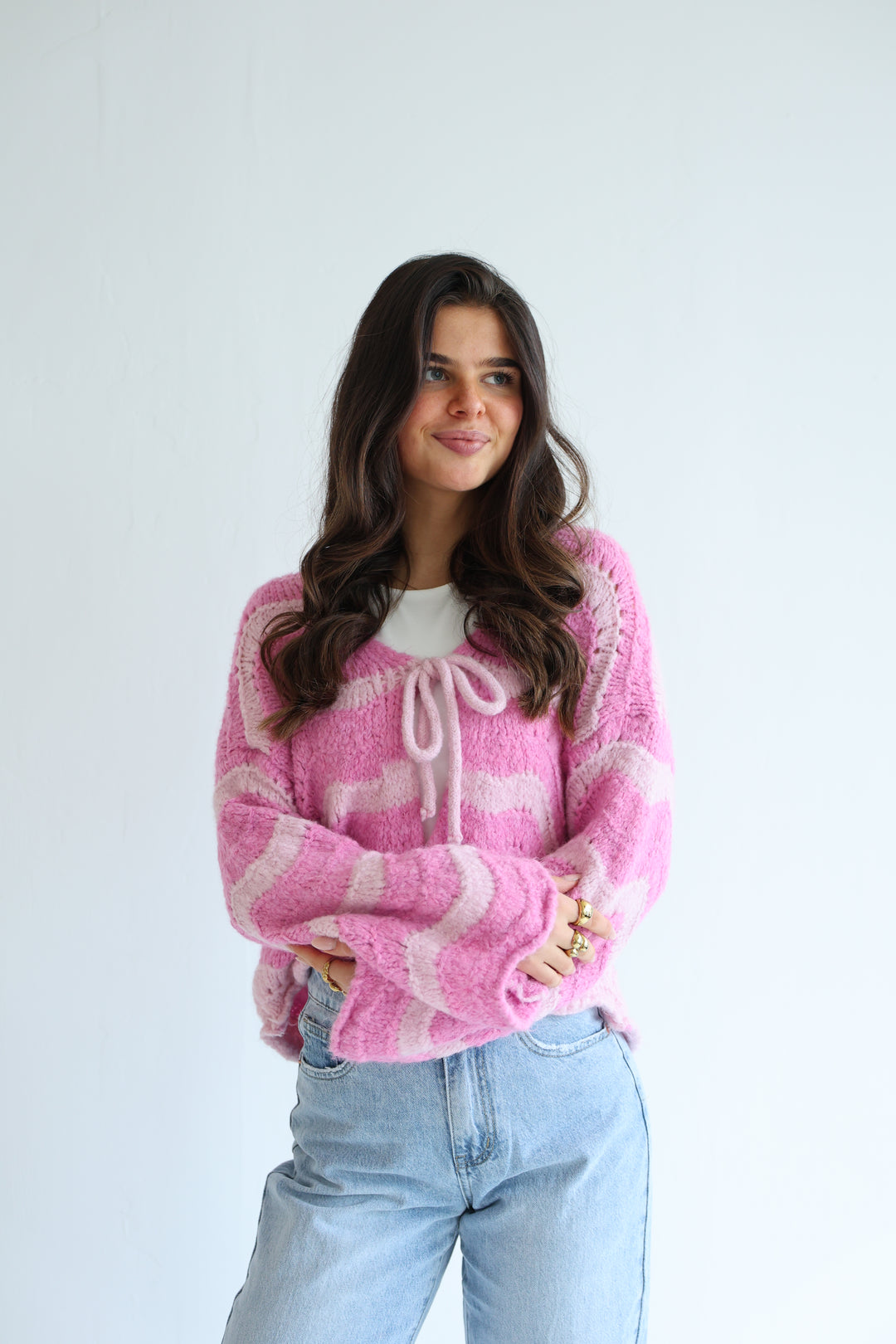 Gestreifte Strickjacke mit Mini-Stehkragen Hannah