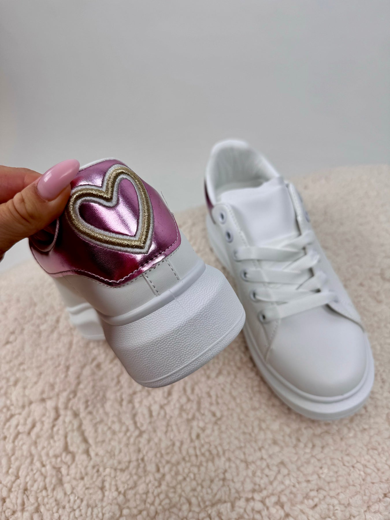 - Super schöne Plateau Sneaker mit einem goldenen Herz auf der Rückseite des Sneakers