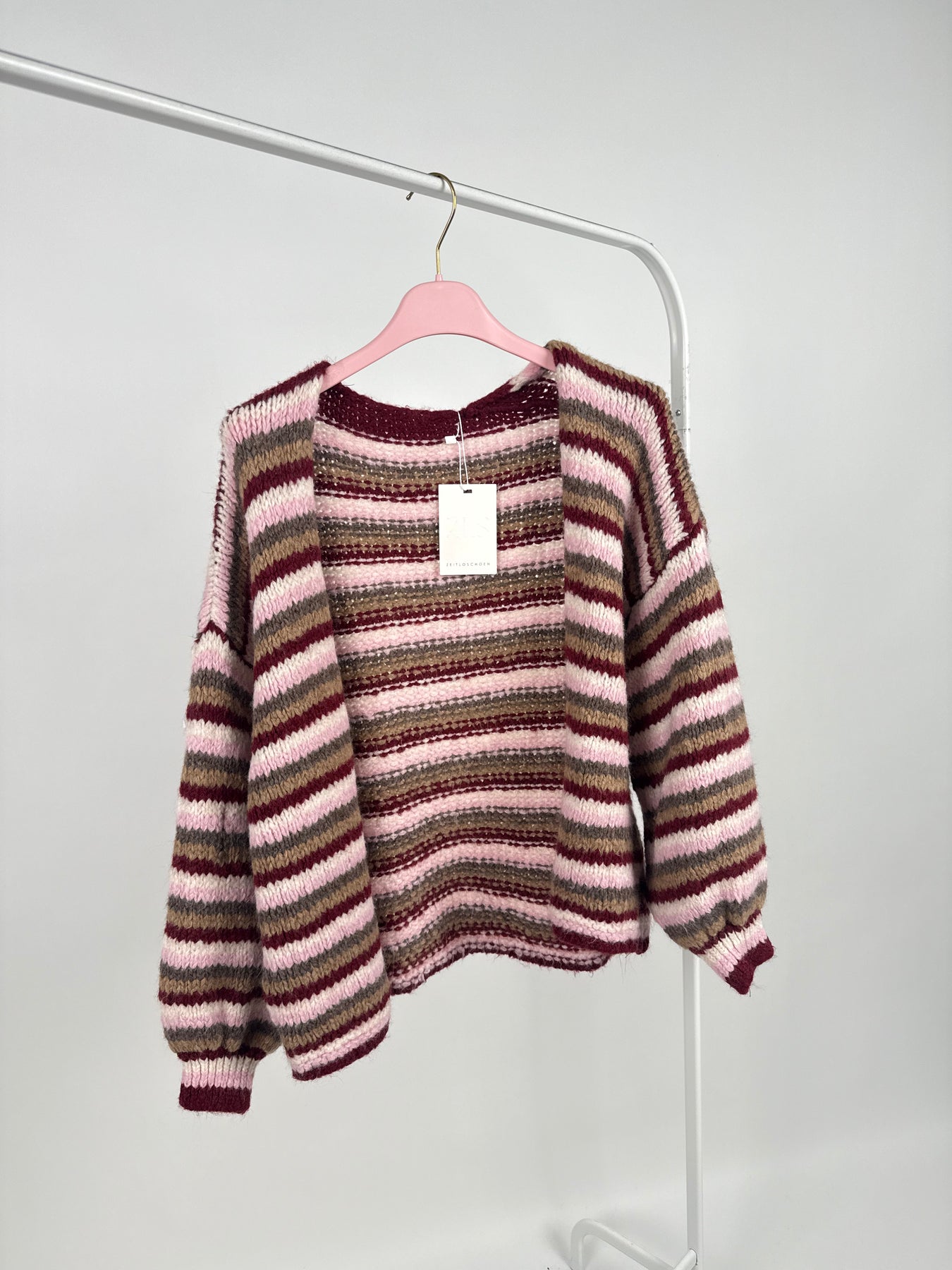 GESTREIFTER OVERSIZE CARDIGAN MERLE BORDEAUX (B-WARE)
