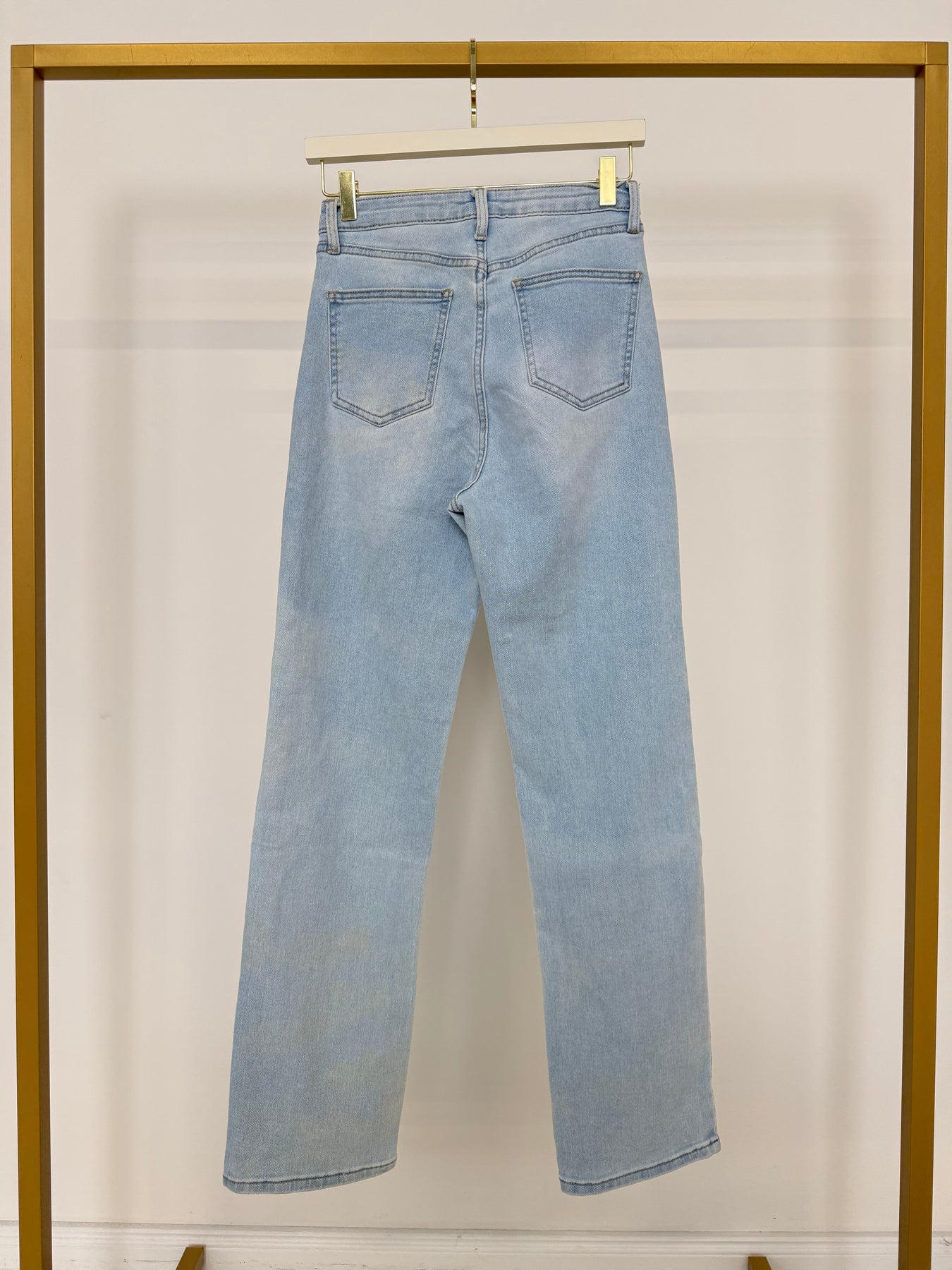 - ausgeblichene Flecken an der linken Beinrückseite (siehe Bild)