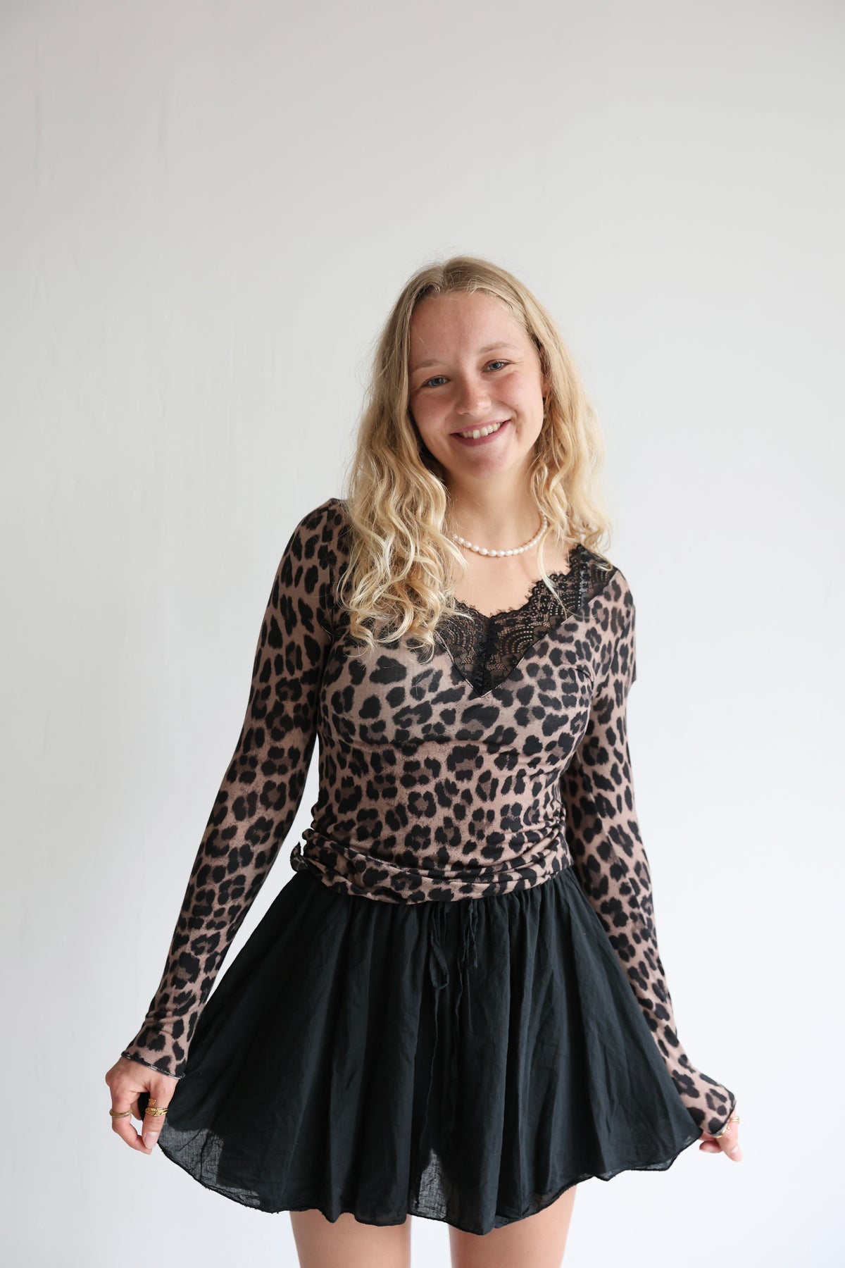 • Langarmshirt mit Cashmere-Anteil und Leoprint
