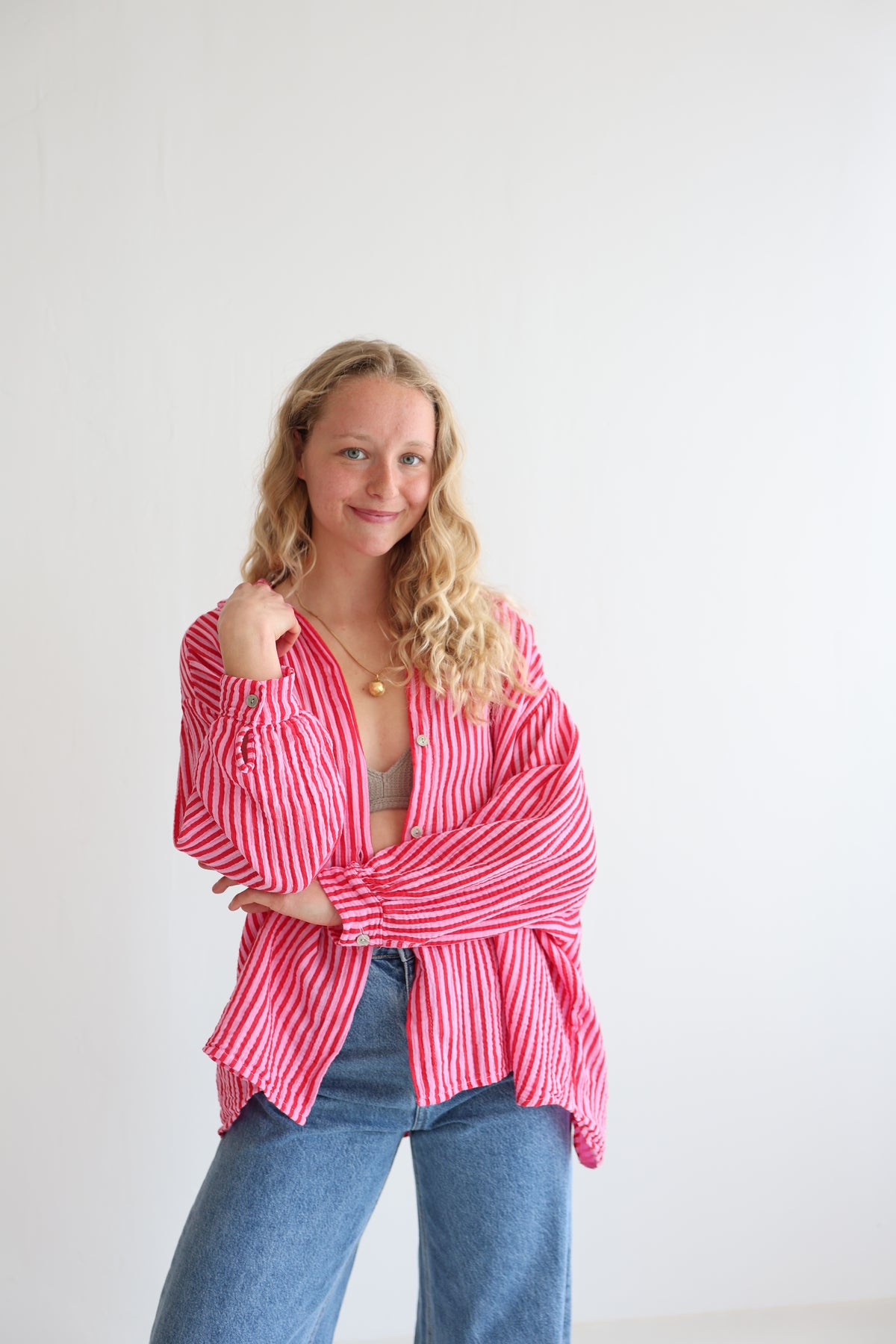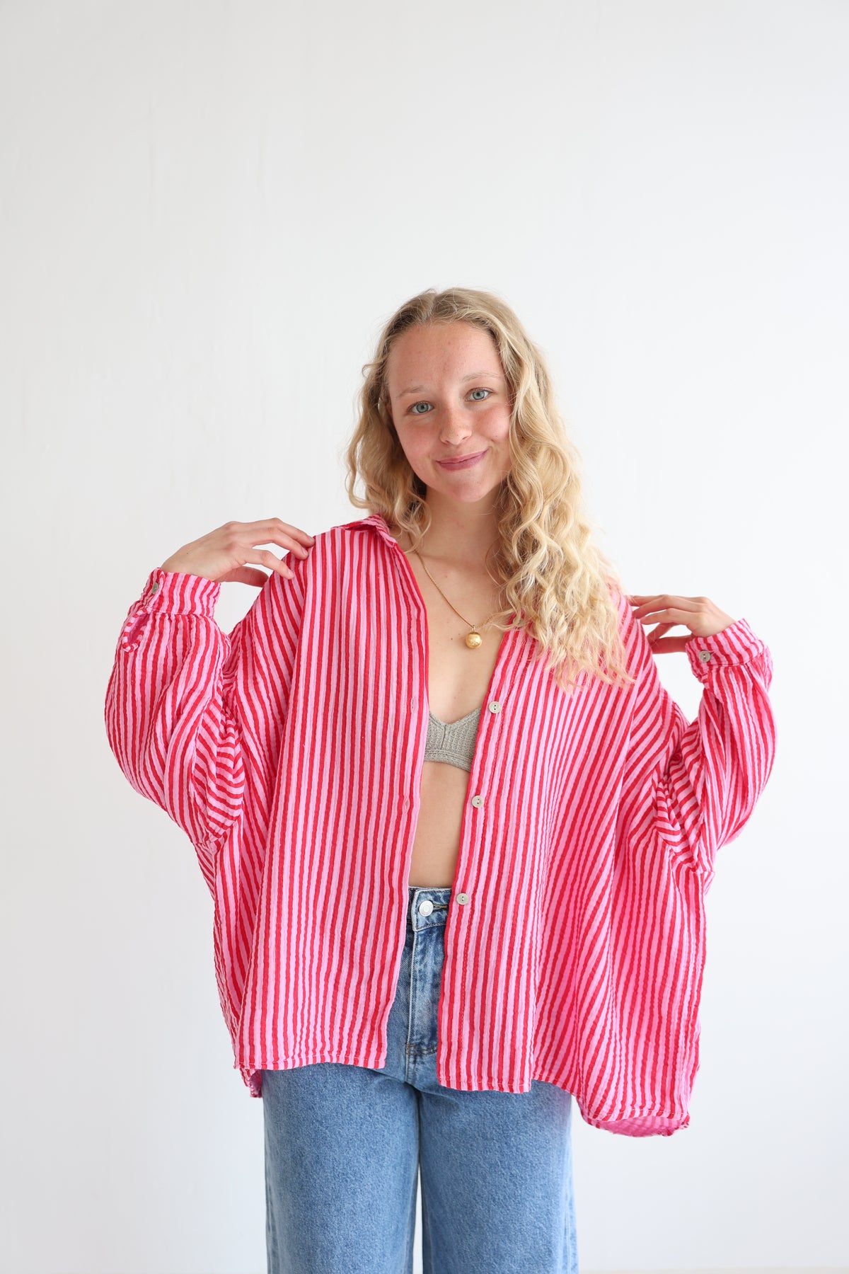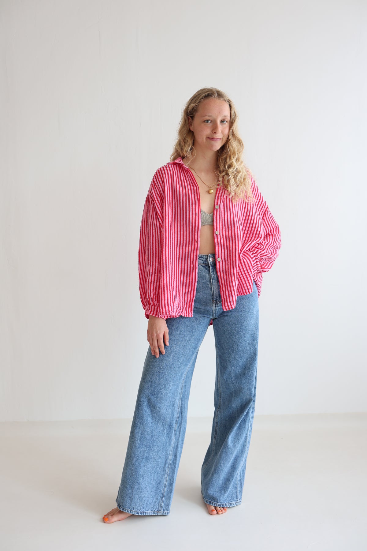 • lockeres Blusenhemd aus Musselin mit feinen Streifen