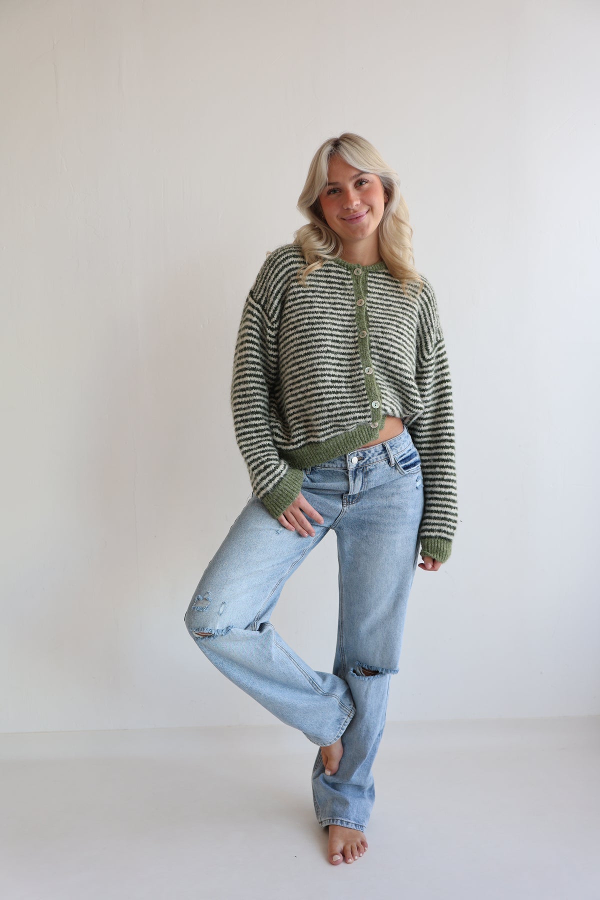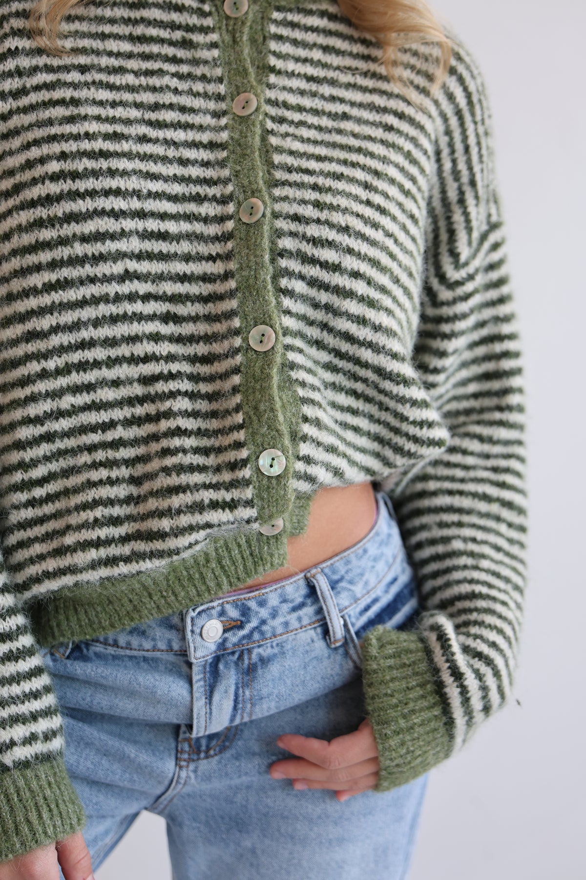 • weicher und kuscheliger gestreifter Cardigan