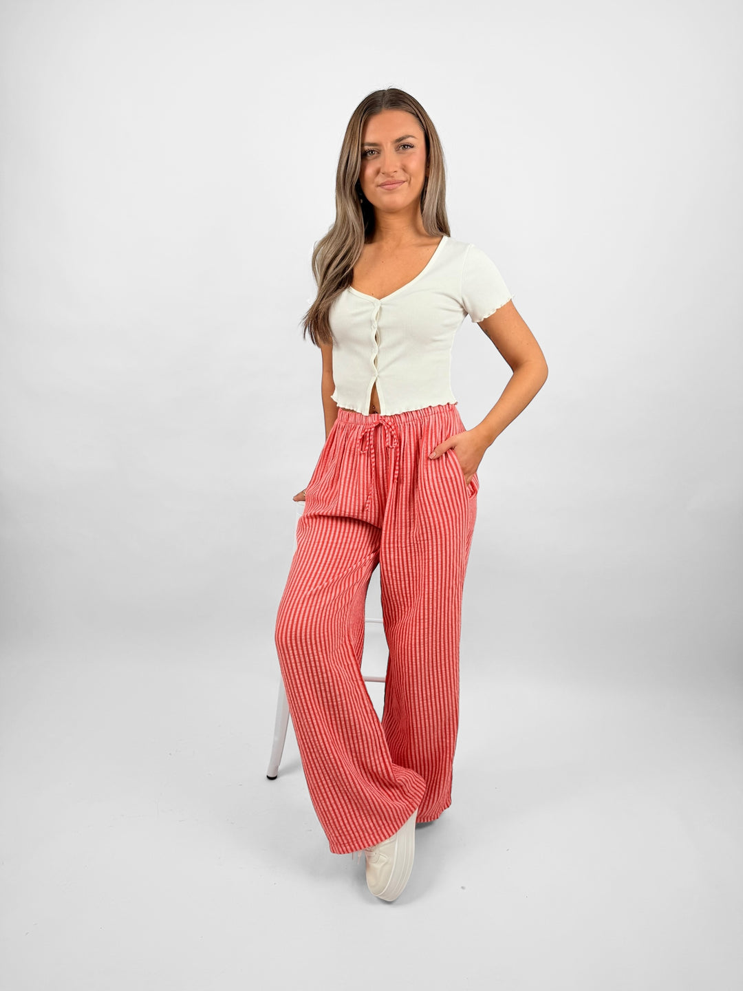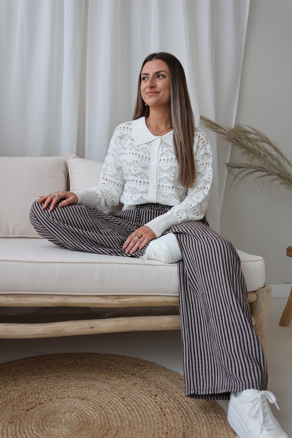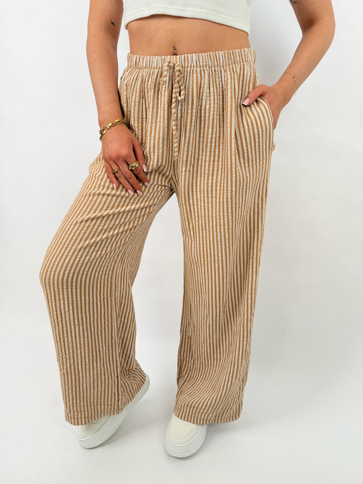 • Super weiche Hose aus dem Trendstoff Musselin mit feinen Streifen