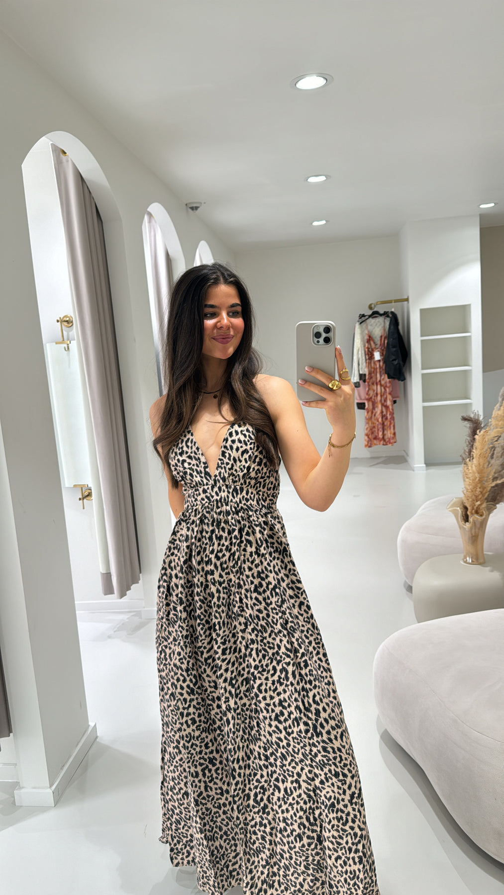 - langes Kleid mit Leoprint