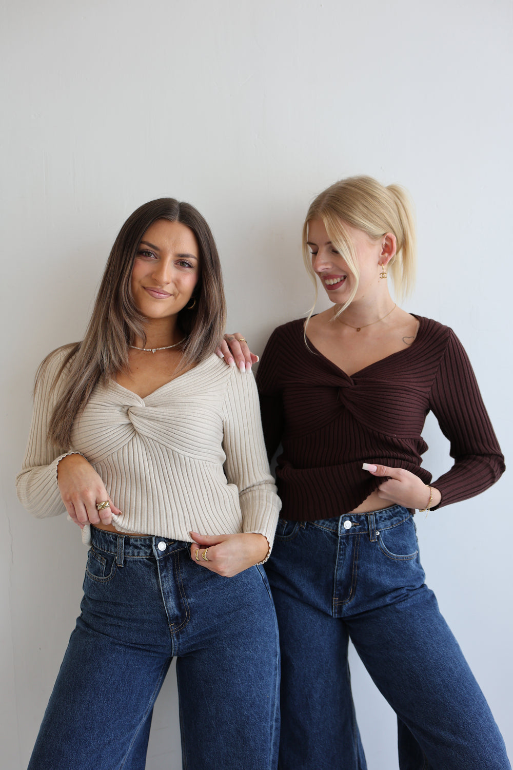 - Geripptes Longsleeve mit Knoten am Ausschnitt