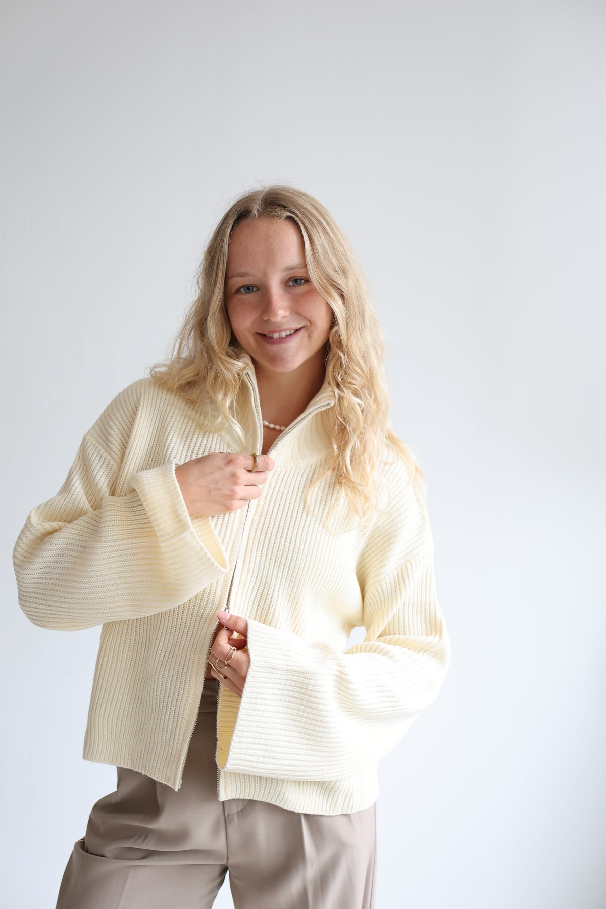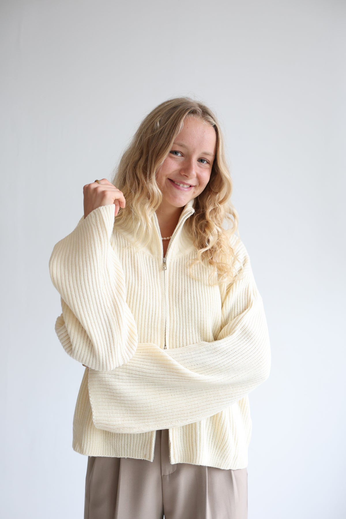• der Cardigan kann durch einen Reißverschluss komplett geöffnet werden (von oben und unten)