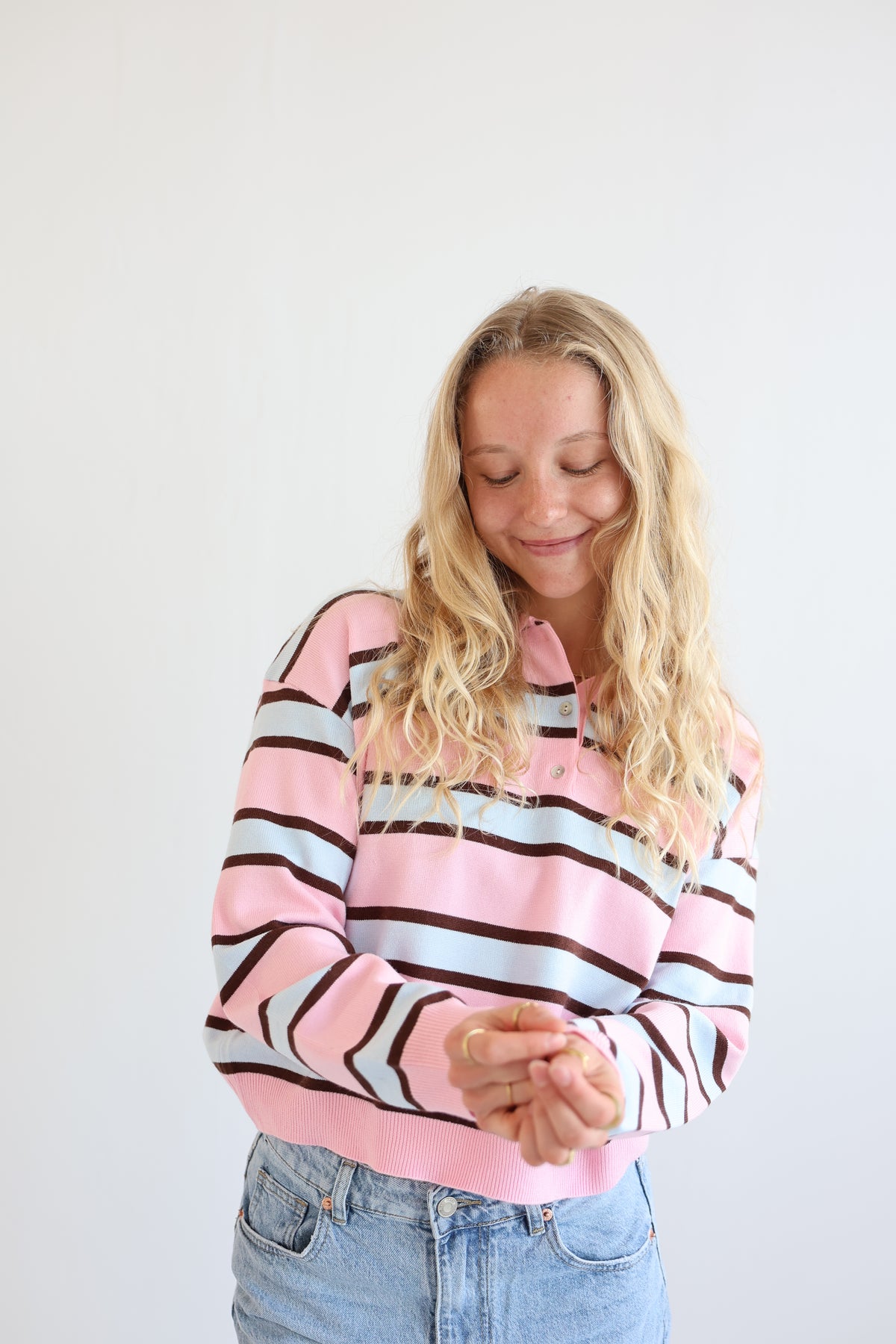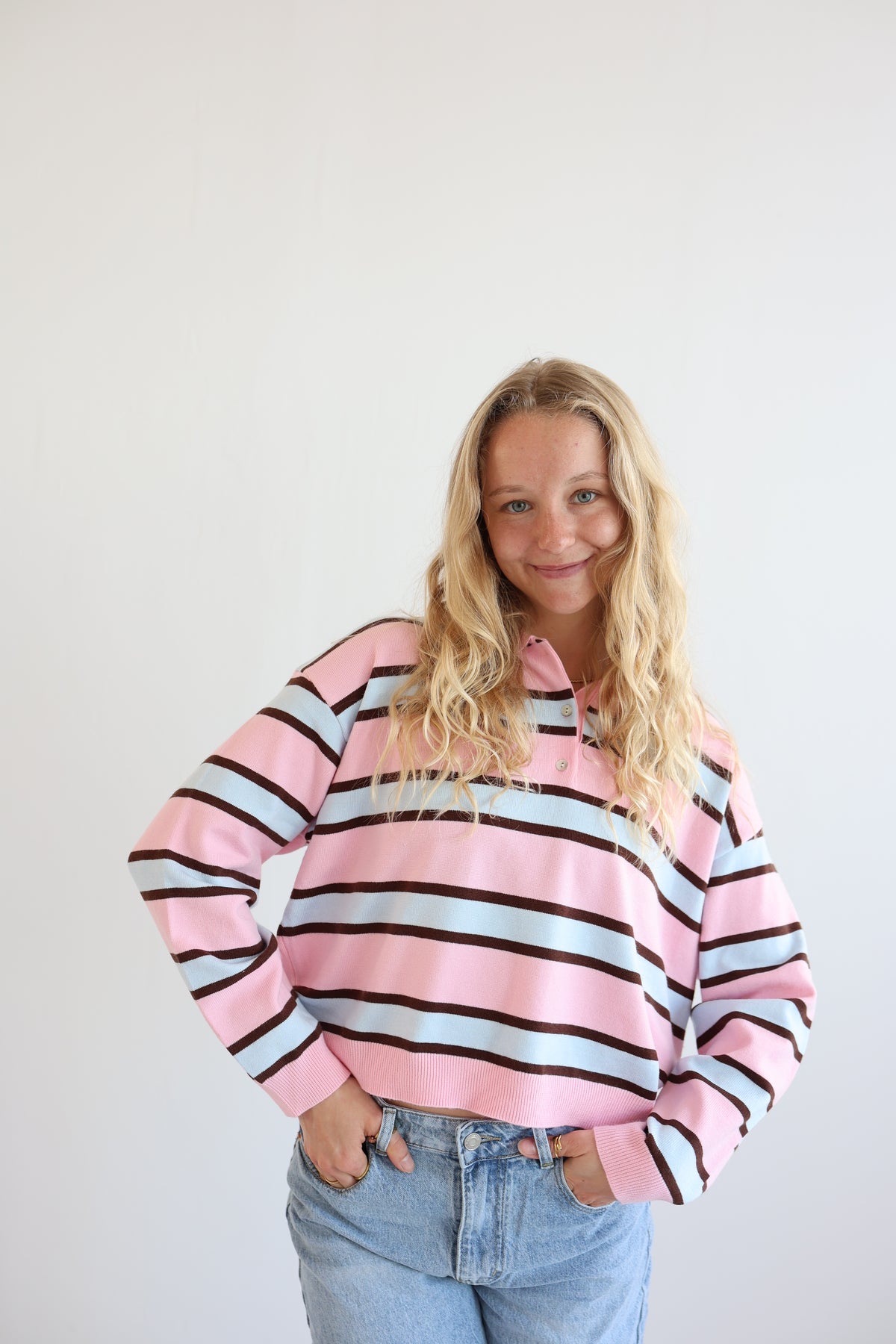 Soft Pink Striped Long Polo