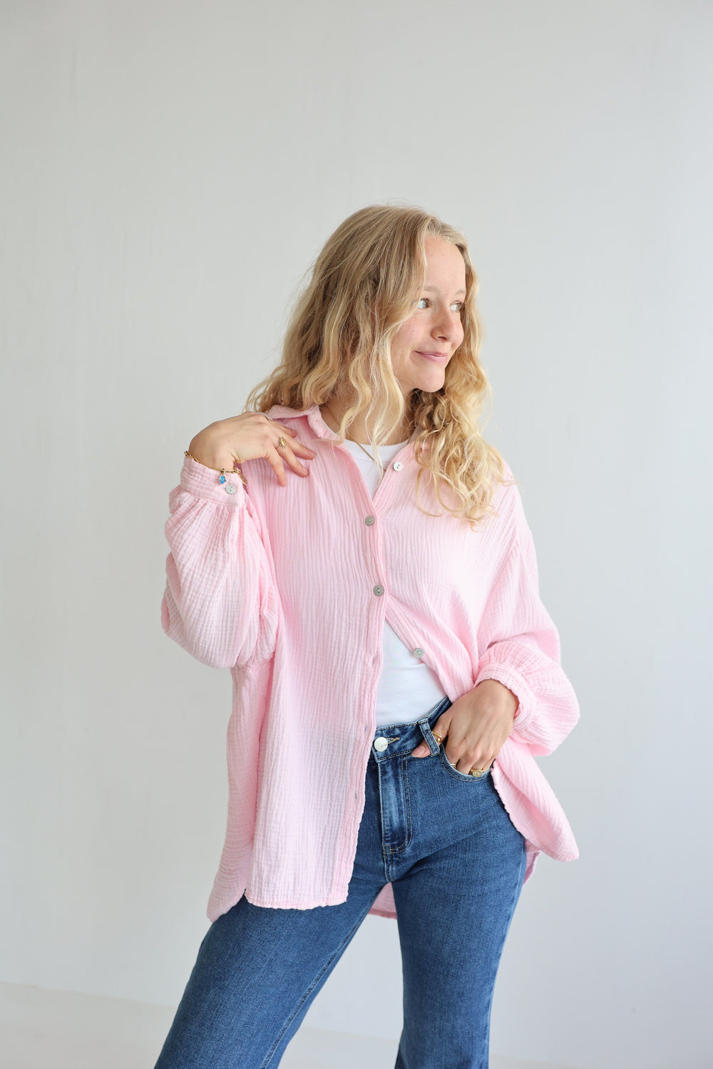 Kurzes Blusenhemd aus Musselin (einfarbig)