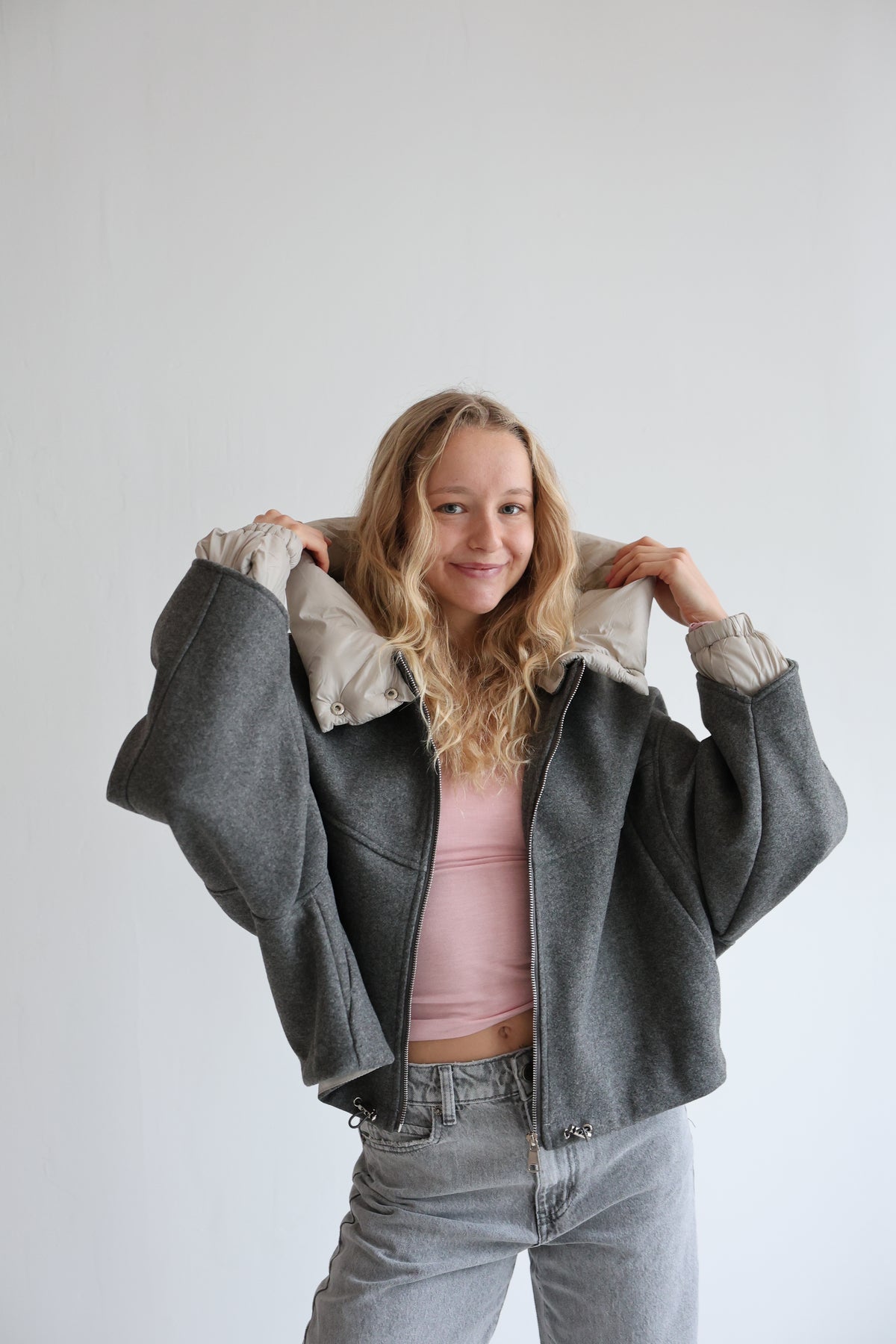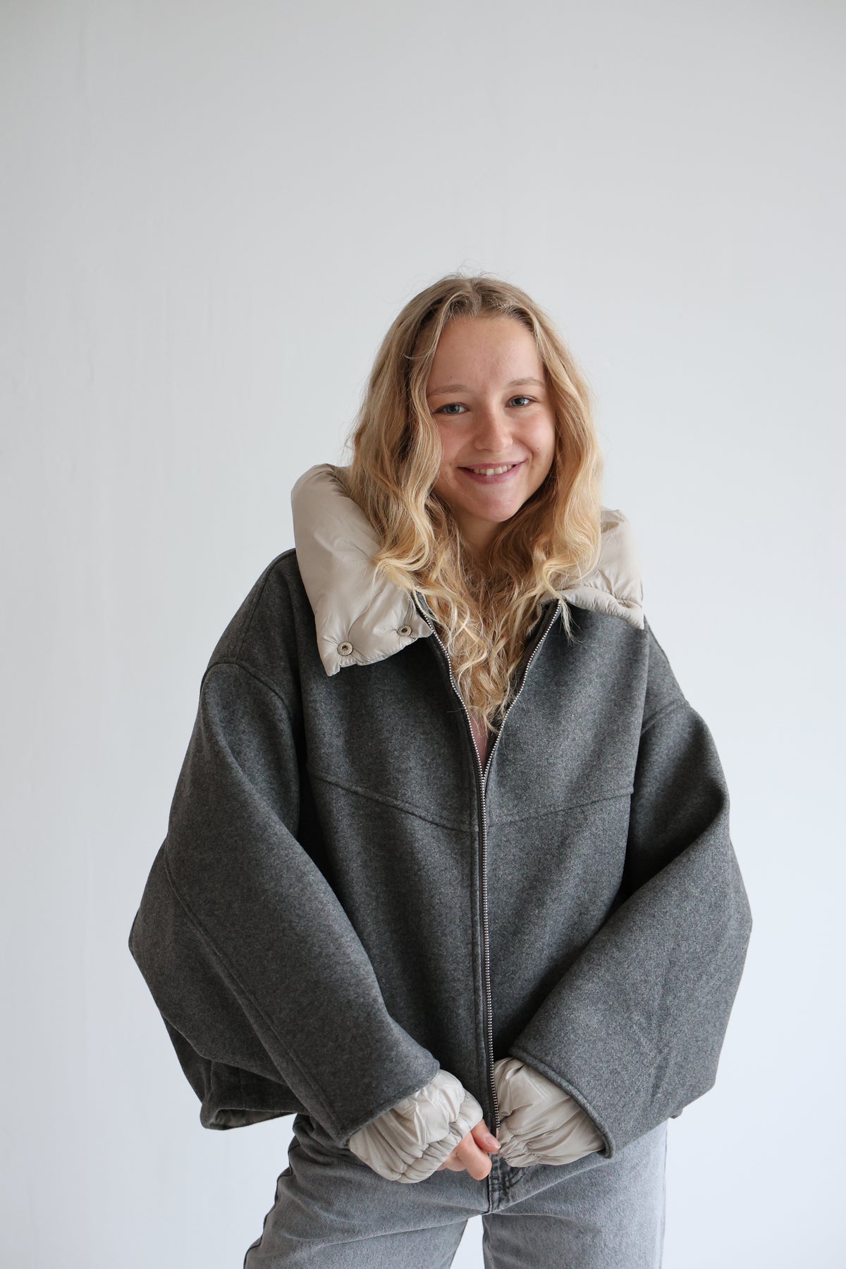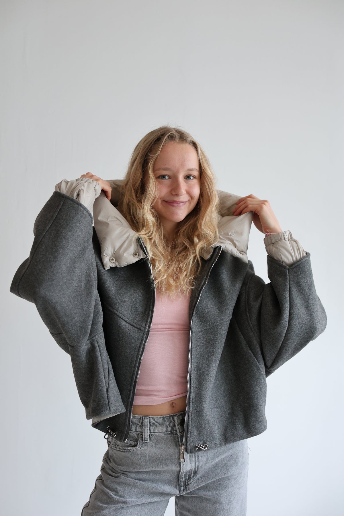 • Oversize Bomberjacke mit abnehmbarer Kapuze