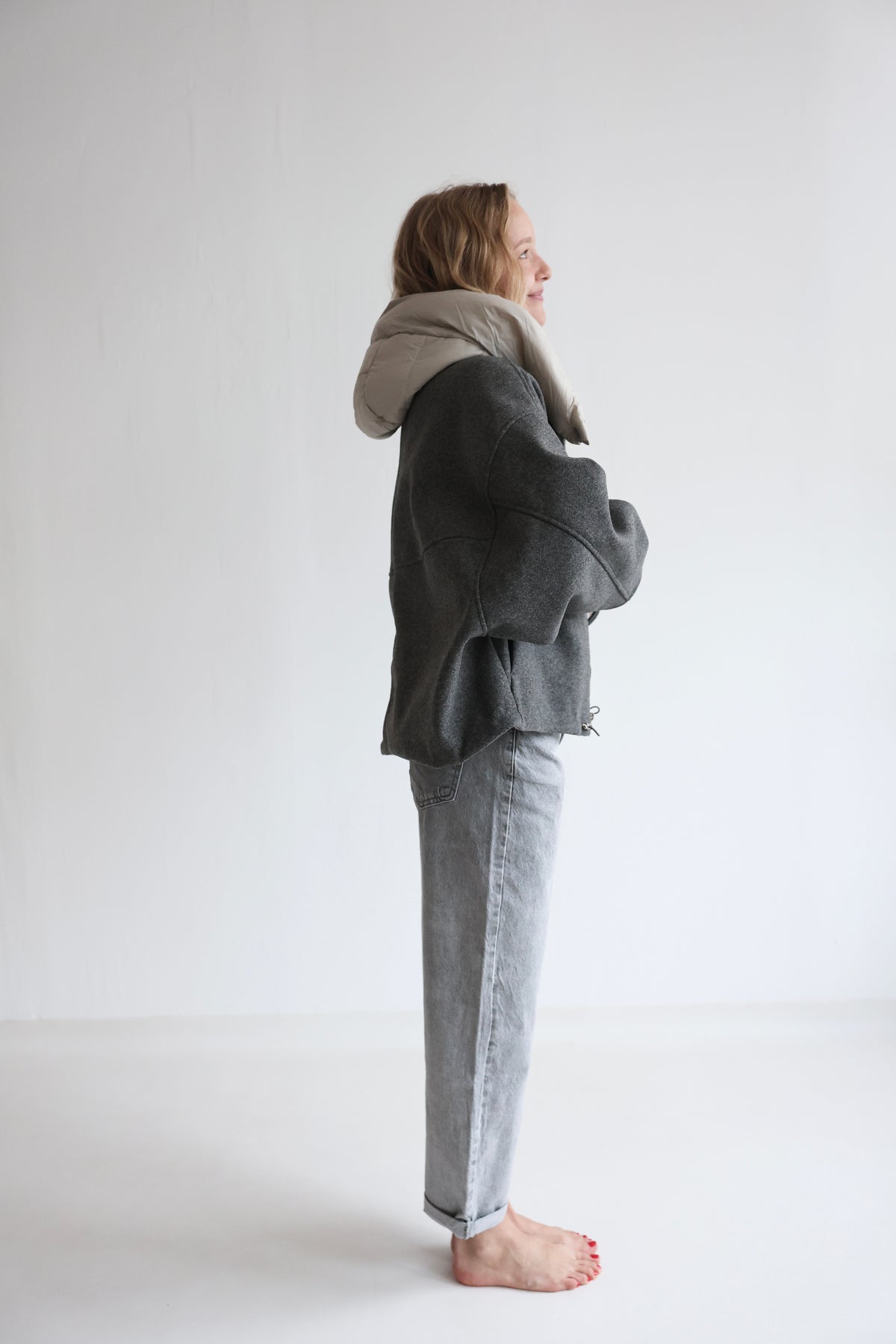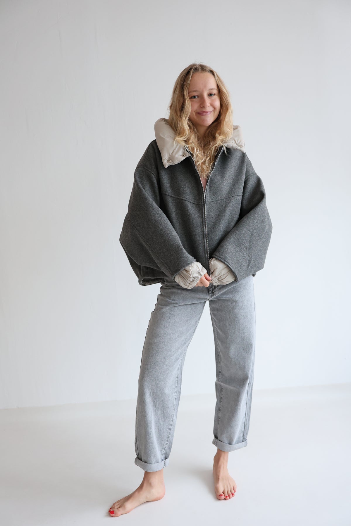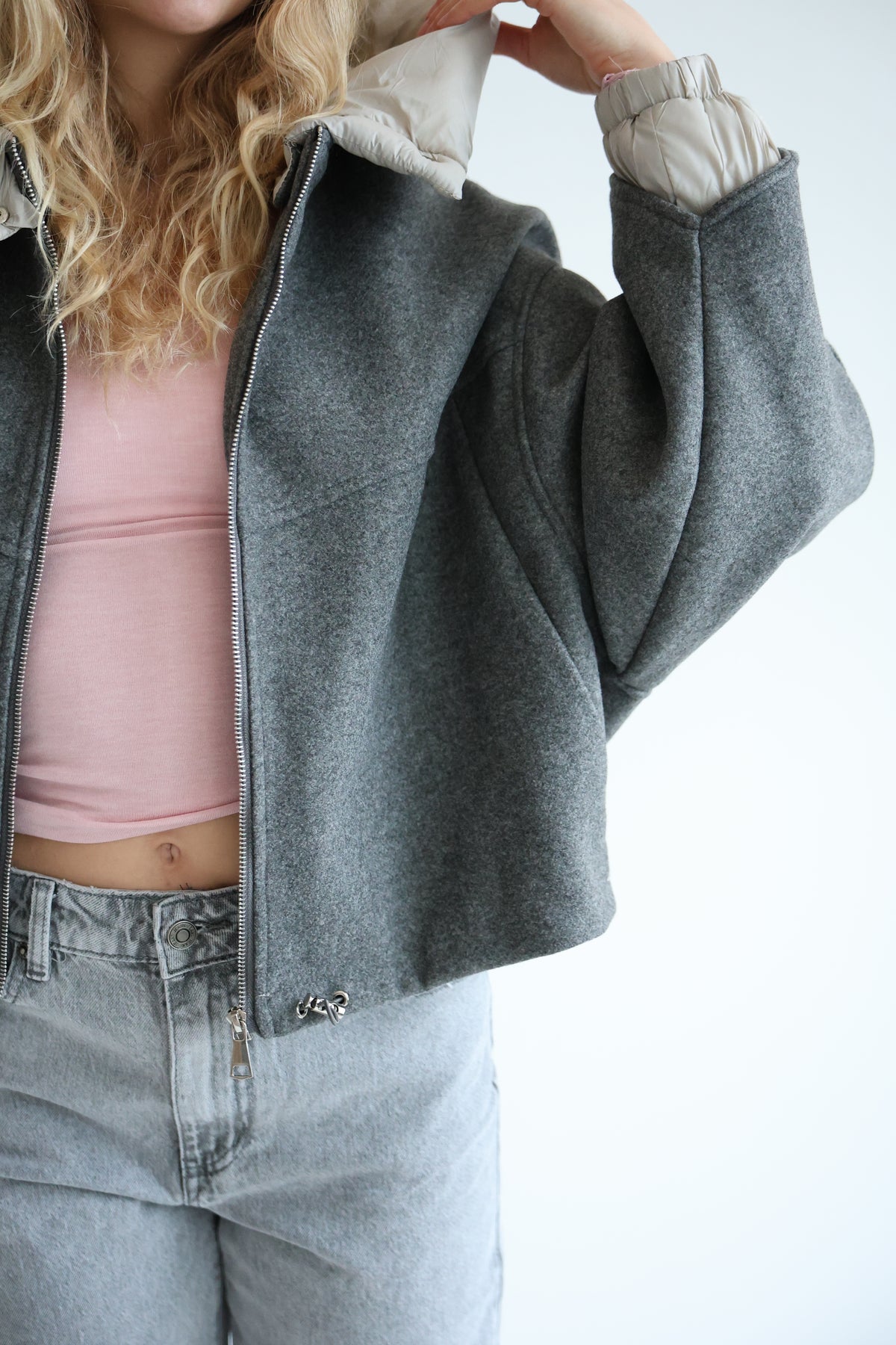 • Oversize Bomberjacke mit abnehmbarer Kapuze