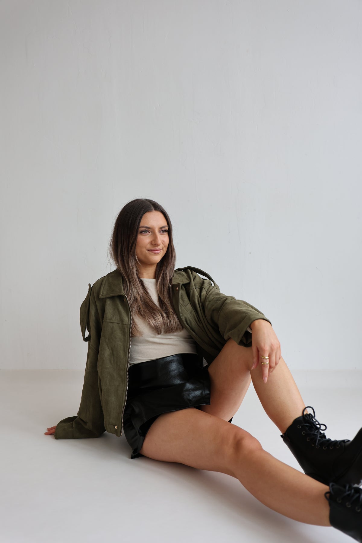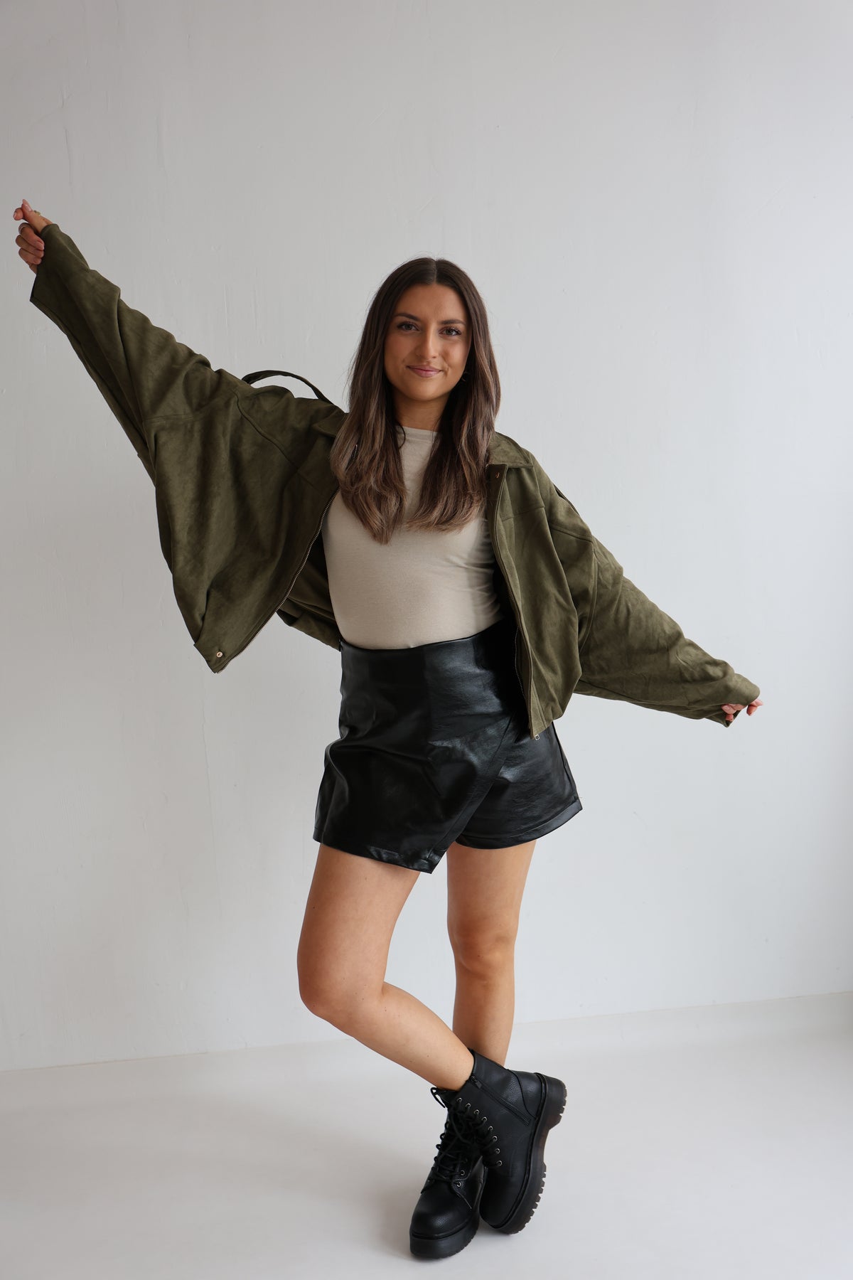 • Oversize Bomberjacke in Wildlederoptik (100% vegan)