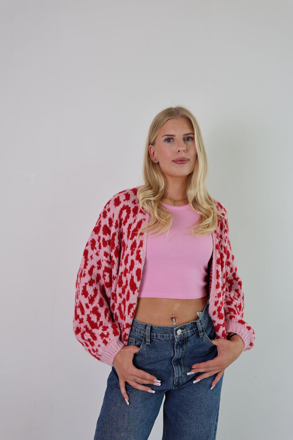Offener Cardigan mit Leoprint