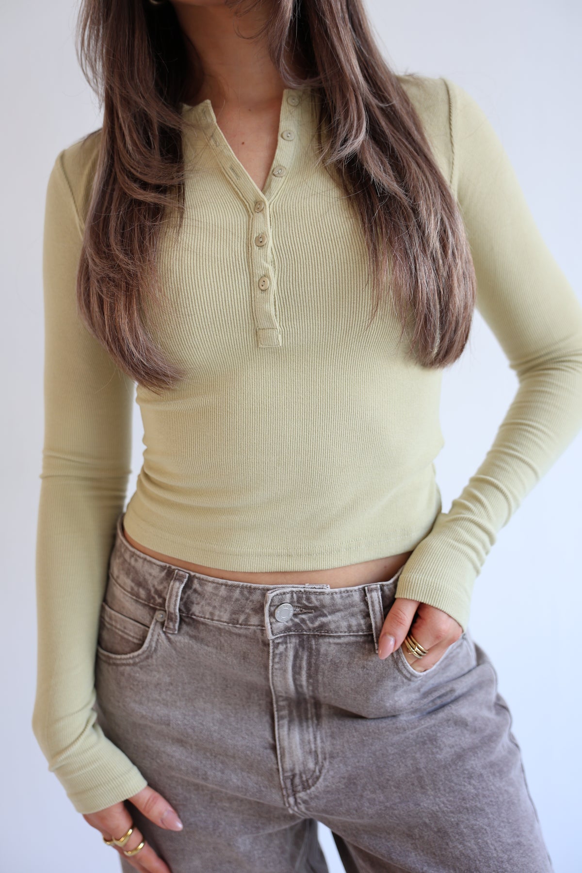 • Basic Langarmshirt mit Knopfleiste