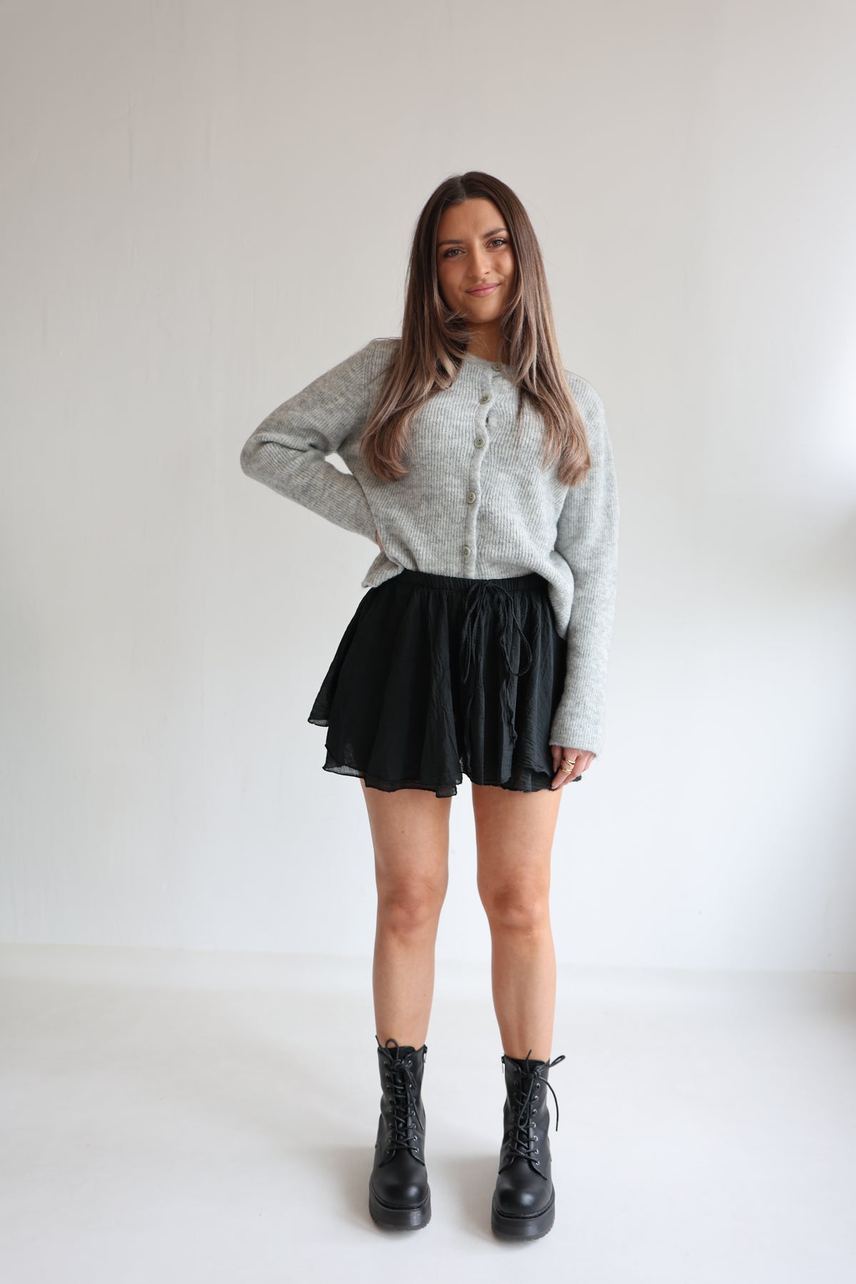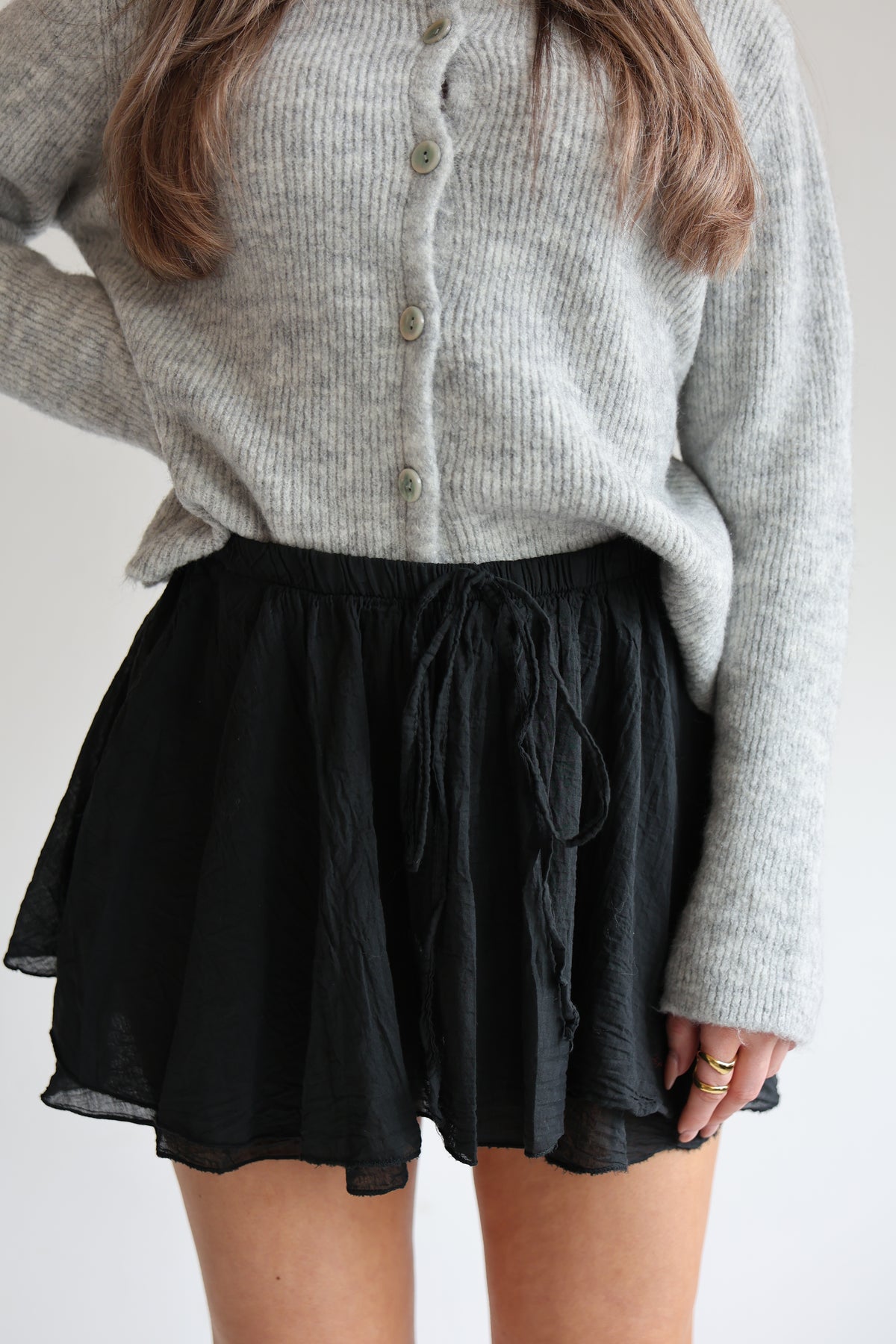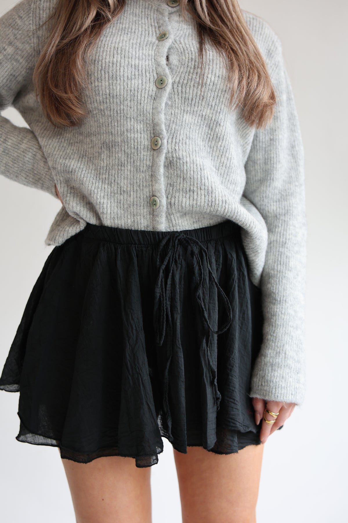 • Gummizug am Bund eingearbeitet, zusätzlich lässt er sich mit einer Schleife binden