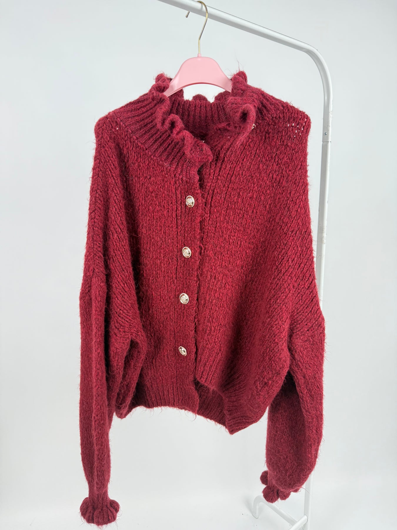 CARDIGAN MIT RÜSCHEN MELLI BORDEAUX (B-WARE)