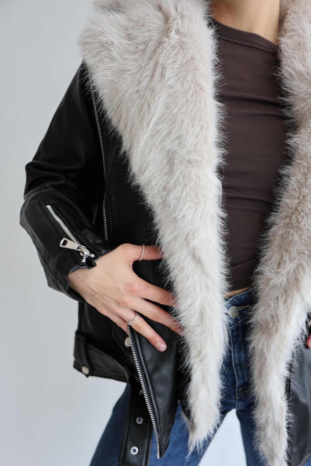 • Super schöne Lederjacke mit Lammfellimitat (100% vegan)
