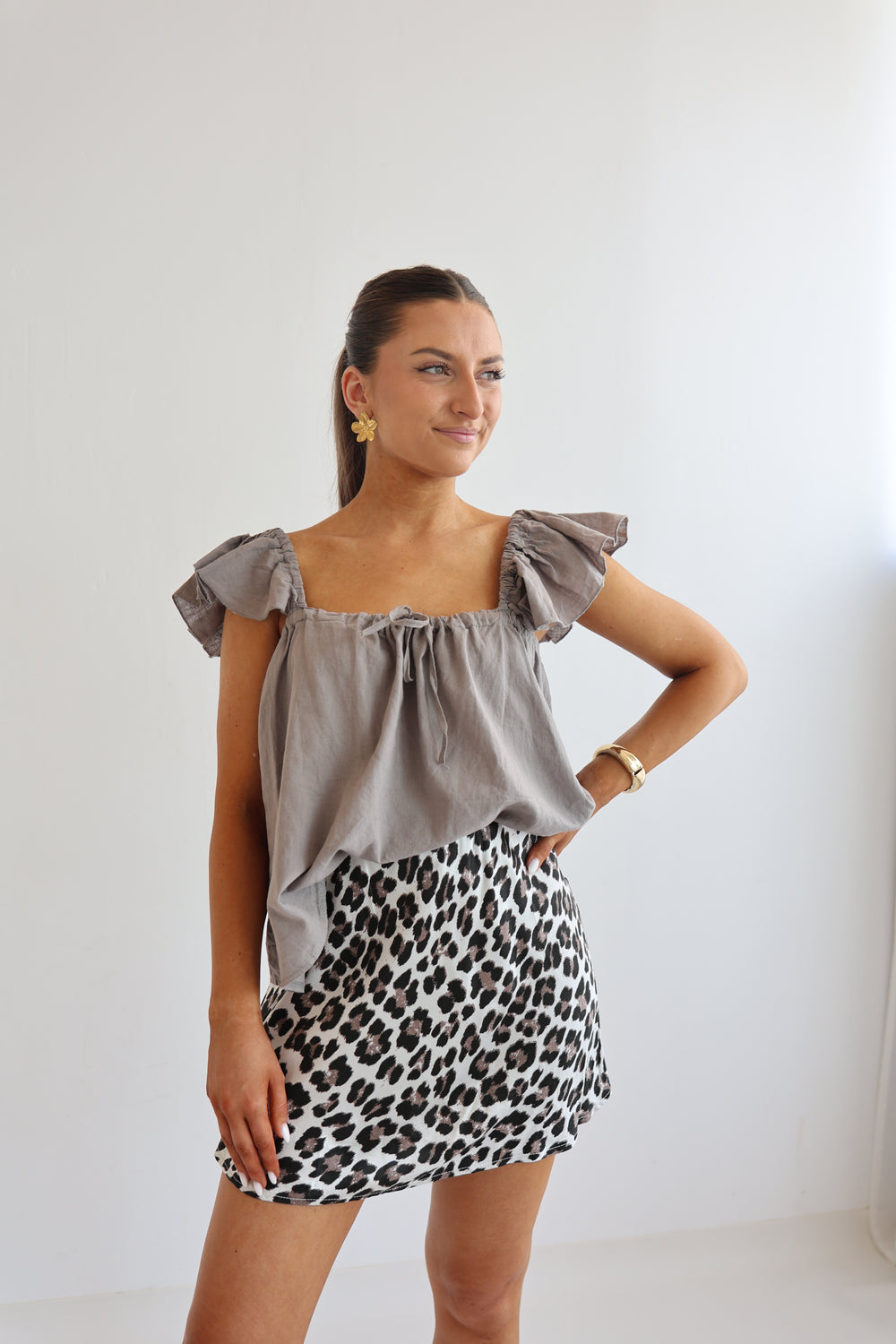Kurzer Viskoserock mit Leoprint