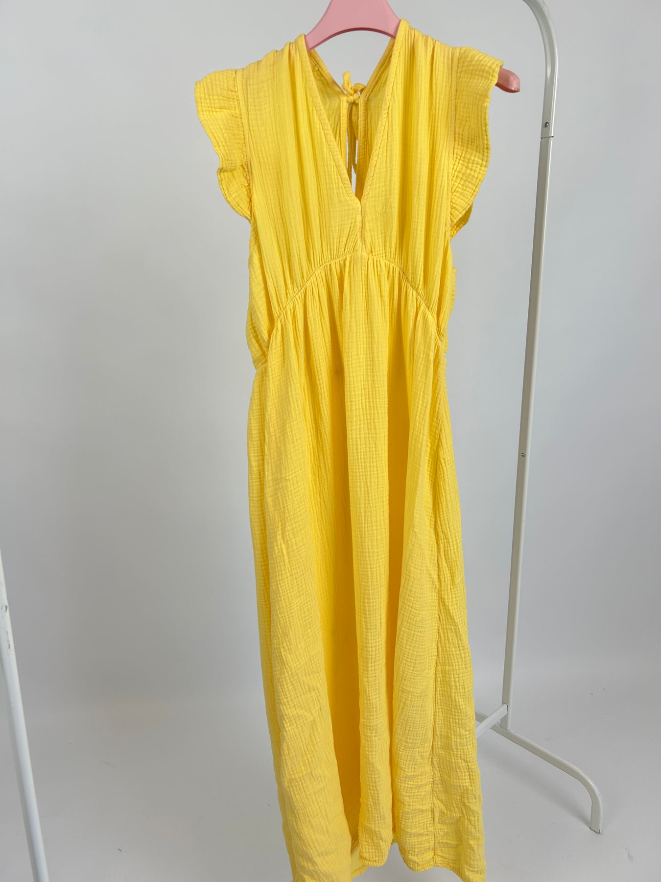 LANGES MUSSELINKLEID MIT RÜSCHEN VANNY GELB EINHEITSGRÖSSE (B-WARE)
