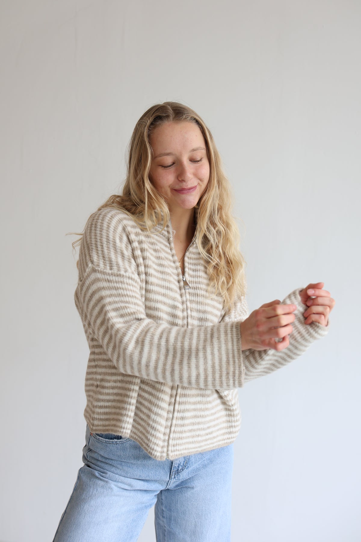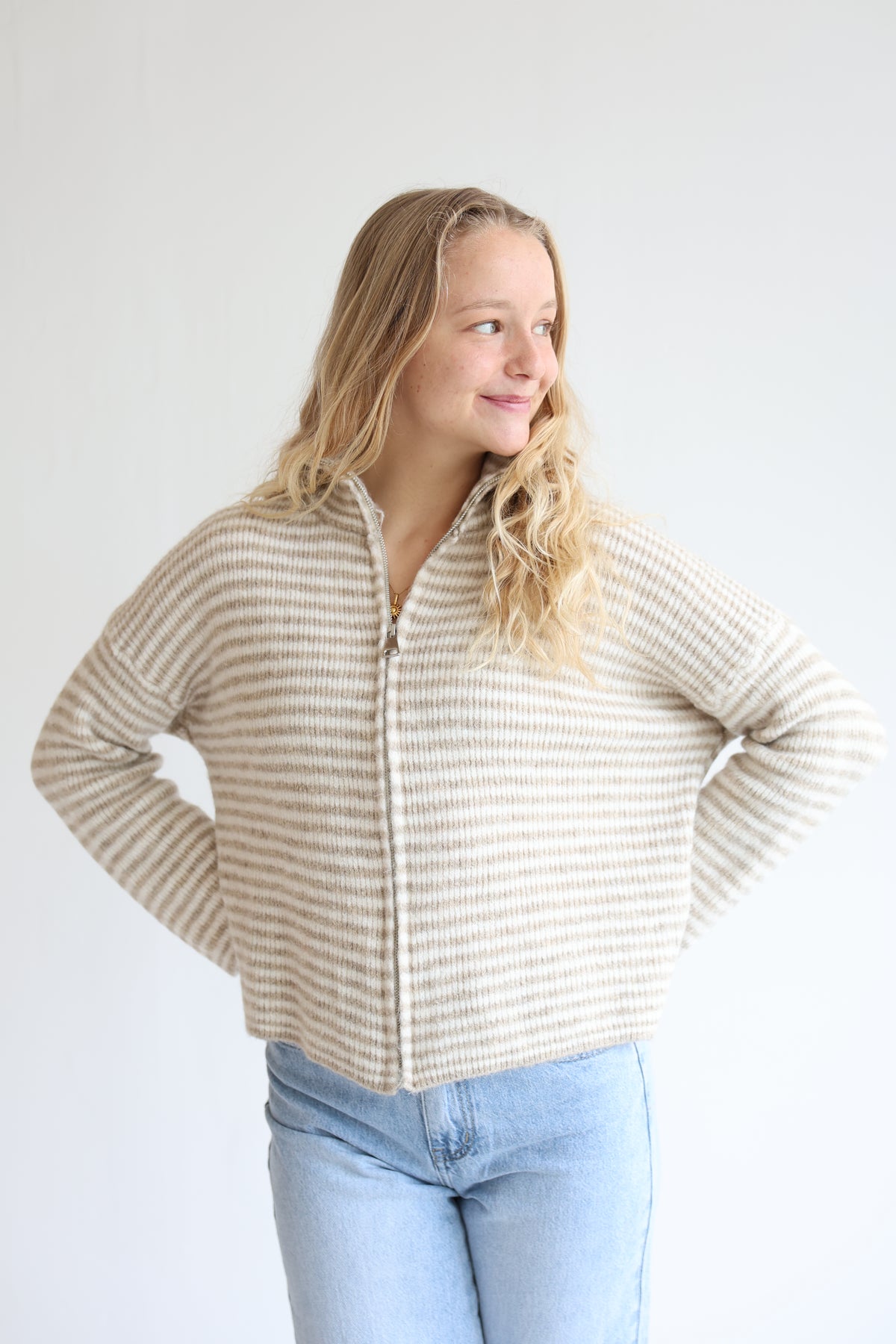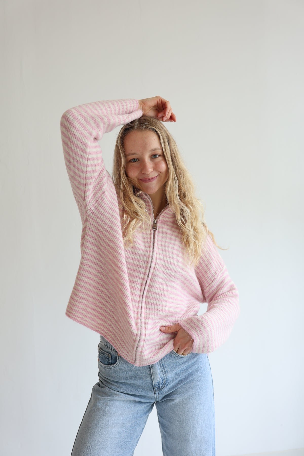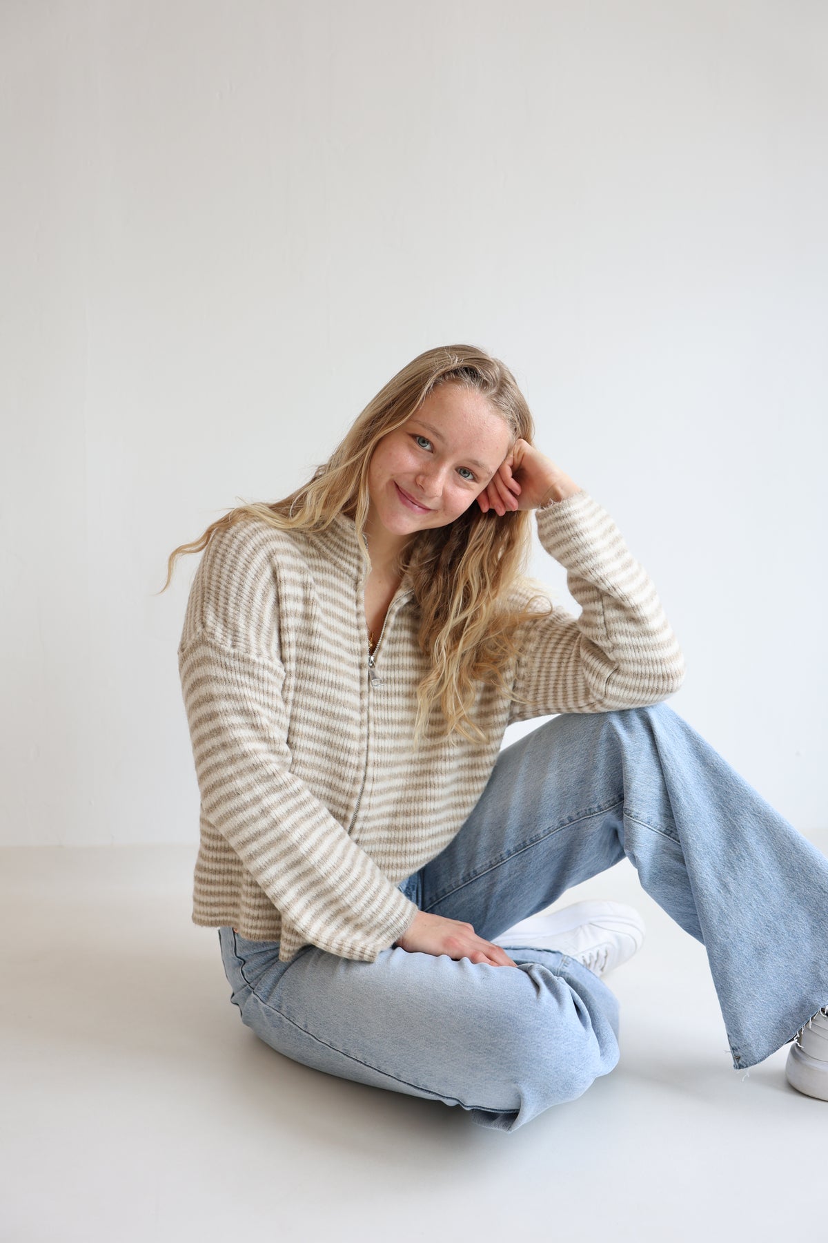 • der Cardigan kann durch einen Reißverschluss komplett geöffnet werden